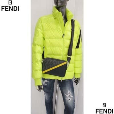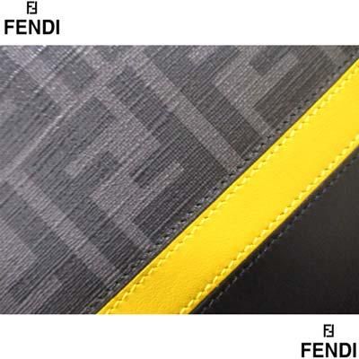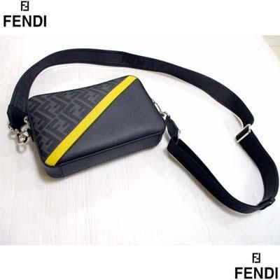FENDI フェンディ ショルダーバッグ カメラケース FFズッカ 切替デザイン ダイアゴナルイエローライン 取り外し可ストラップ グレーブラック 7M0286 ALKA F0R2A
