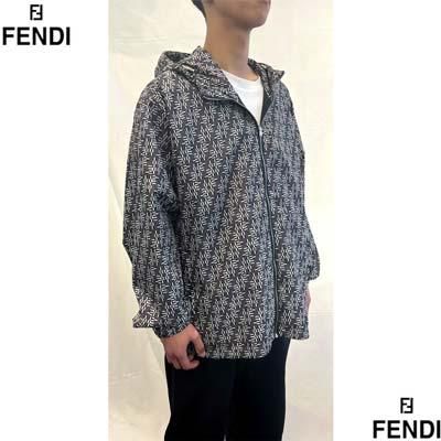 FENDI フェンディ メンズ ジャケット ウインドブレーカー ズッカ柄 全体FFモノグラムロゴ ナイロン アウター グレー FAA935 ARYI F0PU7